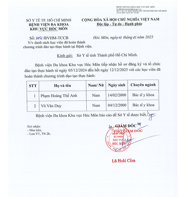DANH SÁCH HỌC VIÊN ĐÃ HOÀN THÀNH CHƯƠNG TRÌNH ĐÀO TẠO THỰC HÀNH TẠI BỆNH VIỆN Facebook twitter google linkedin