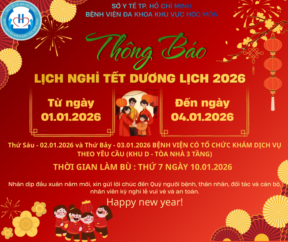 Bệnh viện Đa khoa Khu vực Hóc Môn thông báo lịch nghỉ tết dương lịch 2026 Facebook twitter google linkedin